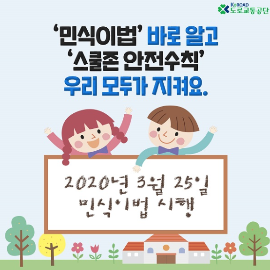 어린이 보호구역 (스쿨존) 관리에 대한 법이 변화합니다. 이전에도 어린이를 위한 교통 법은 있었지만, 이번에는 안전교통시설에 관한 내용이 추가 되었습니다.