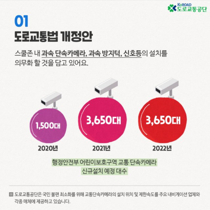 어린이 보호구역 (스쿨존) 관리에 대한 법이 변화합니다. 이전에도 어린이를 위한 교통 법은 있었지만, 이번에는 안전교통시설에 관한 내용이 추가 되었습니다.