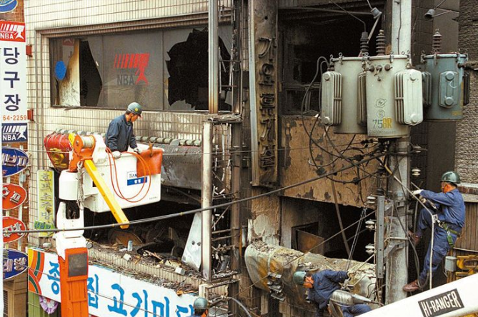 위에서, 콜라텍이 인천 인현동 호프집 화재사건 이후로, 생겨났다고 하는데 아래는 그 당시 화재사건 직후의 사진입니다.
