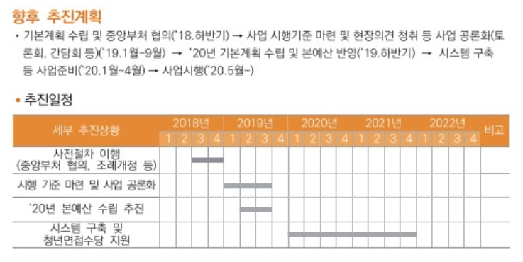 사업을 실제 시행하는 예정은 바로 2020년 5월 부터인데, 알고보면 기본계획 수립단계와 협의를 해나간 거은 2018년 하반기라고 합니다. 2020년1월~4우러까지 시스템을 구축하고 있다는데, 오늘도 누군가는 이 사업에 대해서 시스템을 만들고 있겠네요.