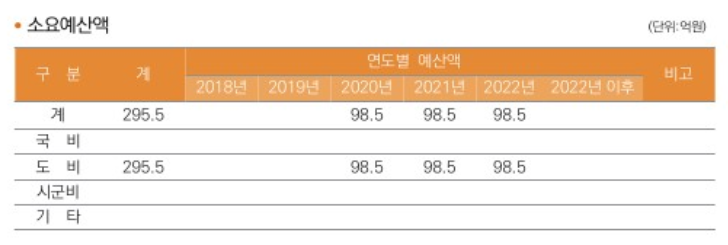경기도청의 자료에 의하면 2020년 98.5억원 2021년 98.5억원 2022년 98.5억원으로 총 295.5억원의 국비가 아닌 도비(경기도의 비용)으로 사용하여 지원한다고 합니다.