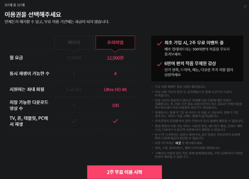 - 왓챠플레이 프리미엄 : (12,900원 x 12개월) ÷ 4명 = 38,700원 + 2주 무료