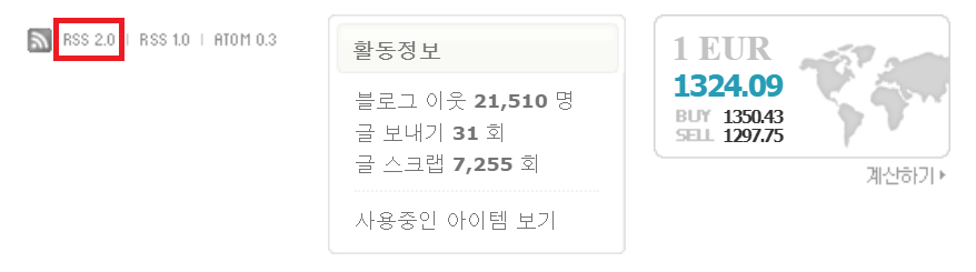 마찬가지로 티스토리에서도 RSS Feed 라는 아이콘을 보여줄 수도 있습니다.