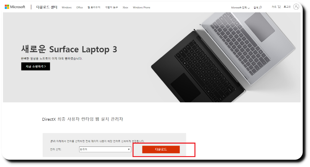 첫 번 째 방법은 최신 DirectX를 홈페이지에서 다운로드 받아서 재설치를 해보는 방법입니다.