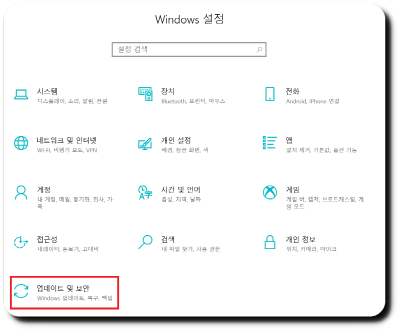 포멧 입니다. Windows 설정에서 업데이트 및 보안을 누르신 후에,