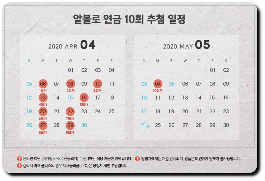 2020년 4월 한달간 진행을 하는데 어떻게 추첨을 하는지 알아봐야겠죠!