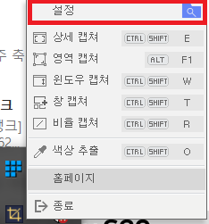 기본설정은 영역 캡쳐기능으로 설정이 되있는데, 저는 사실 영역 캡쳐 기능 말고는 쓰지 않습니다.