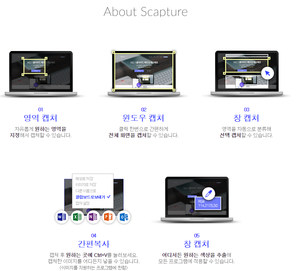 에스캡쳐 공식홈페이지에 들어가면 에스캡쳐는 딱 한페이지로 요약이 되어있습니다. 이렇게 간단한 소개 상세페이지는 또 본 적이 없네요. 그 만큼 가볍고 빠른 캡쳐프로그램이라고 오히려 강조가 되는 것 같습니다.