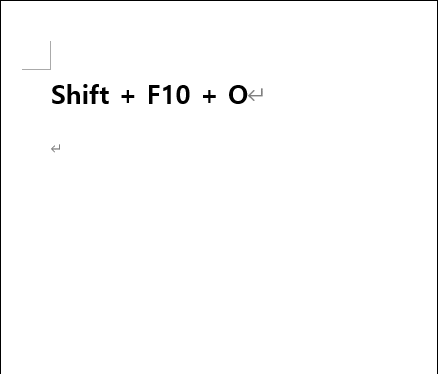 사실 첫 번 째 방법과 똑같은 방법인데 그 이유는 사실 Shift + F10이 마우스 오른쪽 버튼을 누르는 단축키 이기 때문이죠...