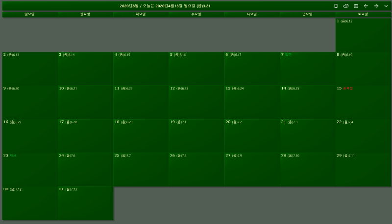 ▼기본적인 사용방법은 상당히 간단합니다. 원하는 날짜를 더블클릭해서 일정을 입력해주면 끝이 납니다. 일정을 입력 후, 메모상자의 오른쪽 위에 체크박스를 누르면 입력이 완료되죠!