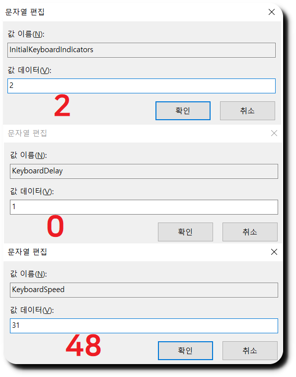 ▼ 재입력 시간을 가장 짧게, 반복속도를 가장 빠름으로 바꾸어 줍니다. 바꾸어 준뒤에 키 반복 속도 테스트로 속도가 빨라졌는지 확인을 해봅시다!