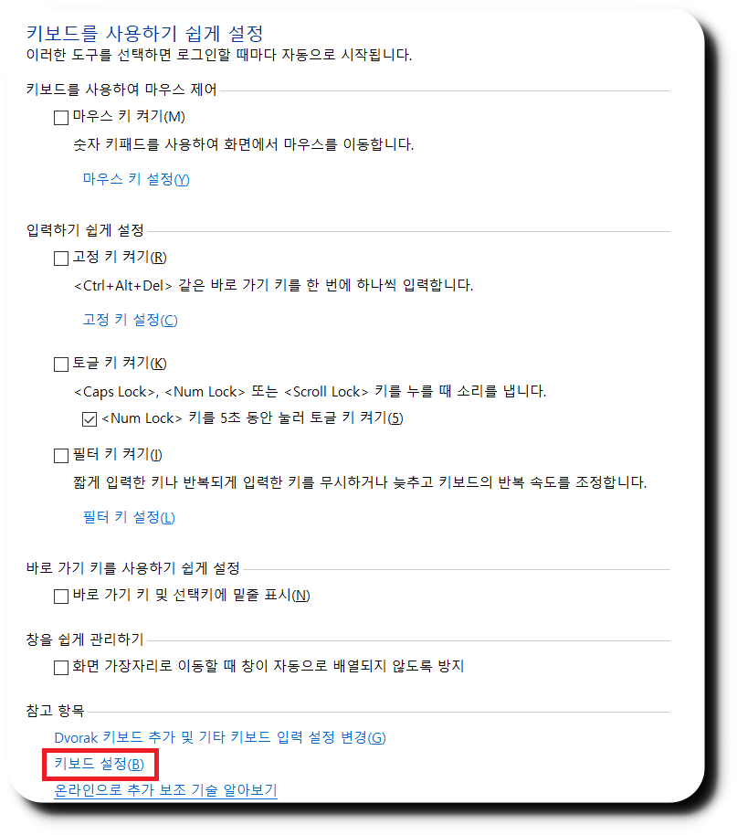 ▼키보드 작동 방법 변경이 보이시죠, 다시 눌러줍니다.