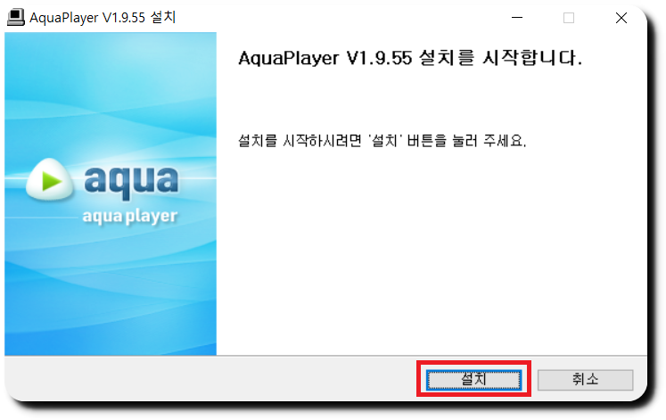 위처럼 접속해서 AquaPlayer_v1.9.55.exe 의 버전을 다운로드 받으실 수가 있습니다. 이제 실행 시켜 설치를 진행시켜 주시면 됩니다.