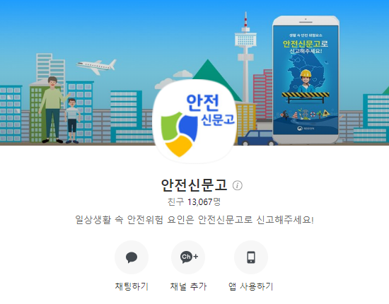 안전신문고 카카오톡 채널 추가