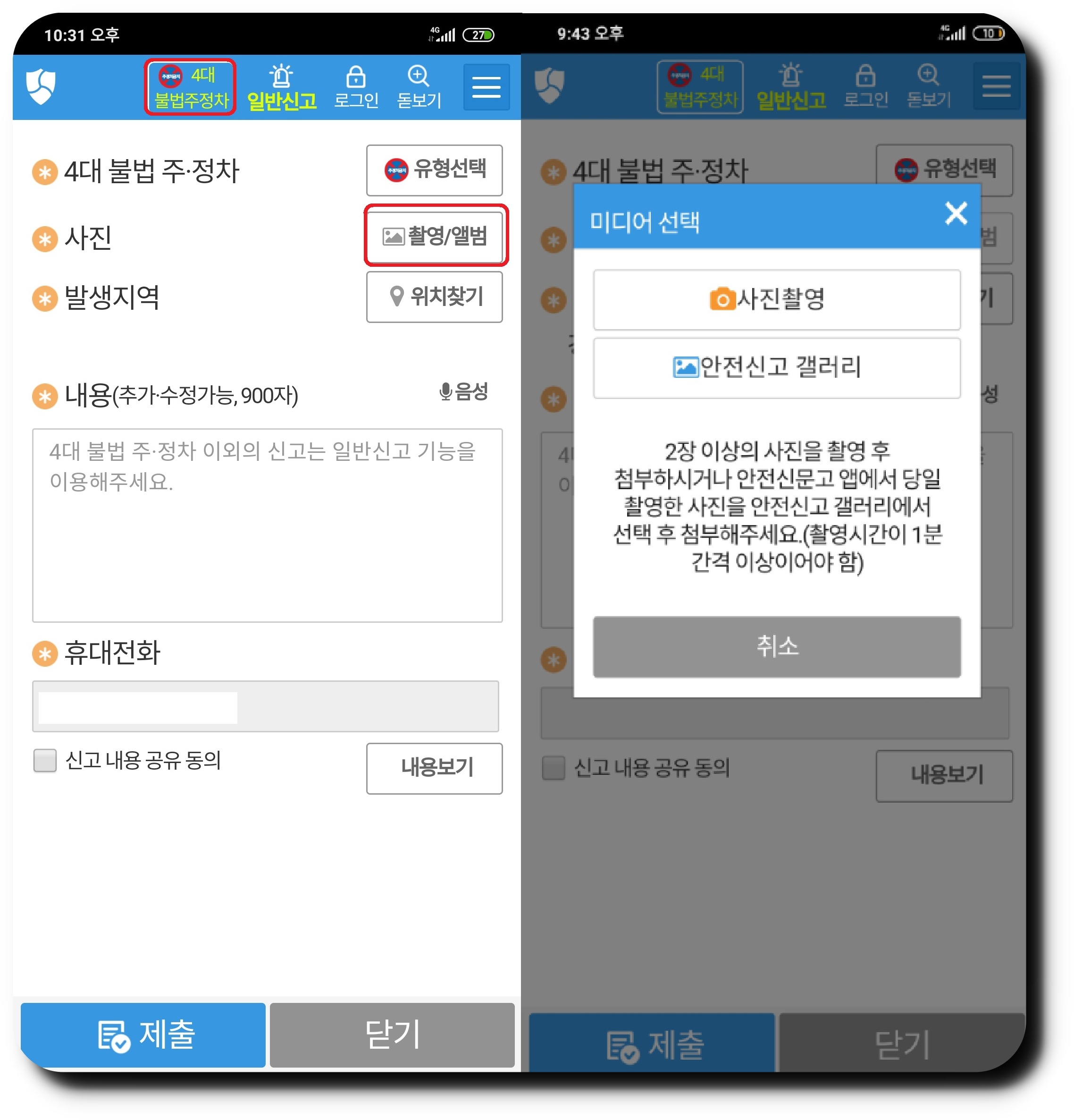 4대불법 주정차 신고
