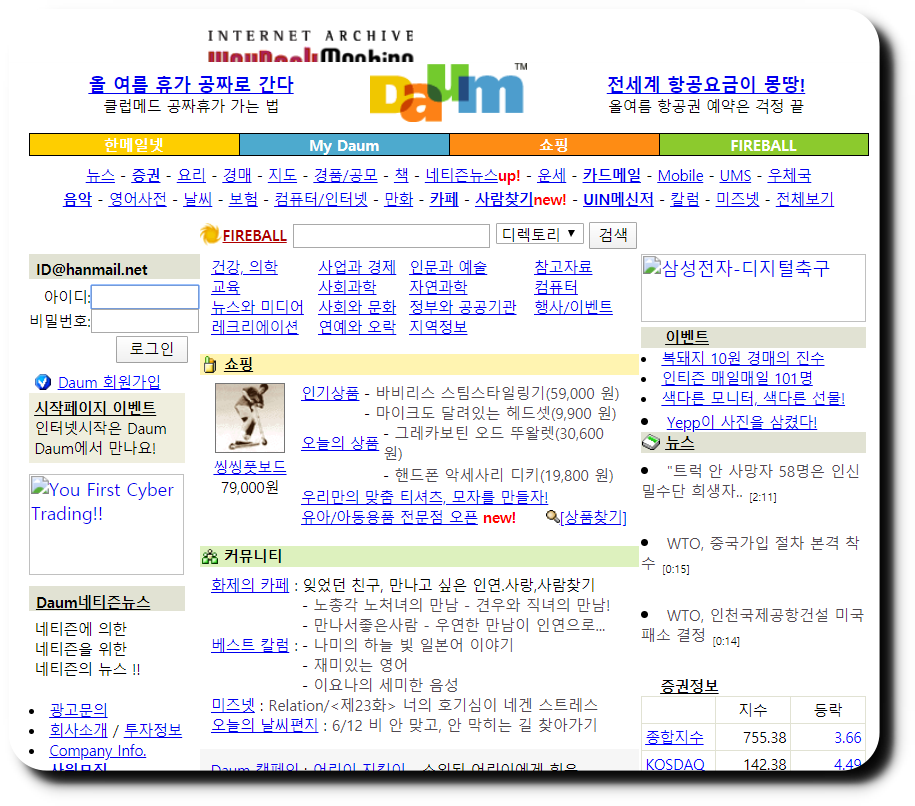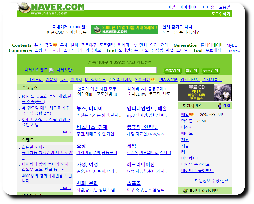 🔻 이번에는 Daum 다음 으로 한번 들어가 보겠습니다. 2000년 같은 날짜로 접속을 해보겠습니다. 아주 좋네요.