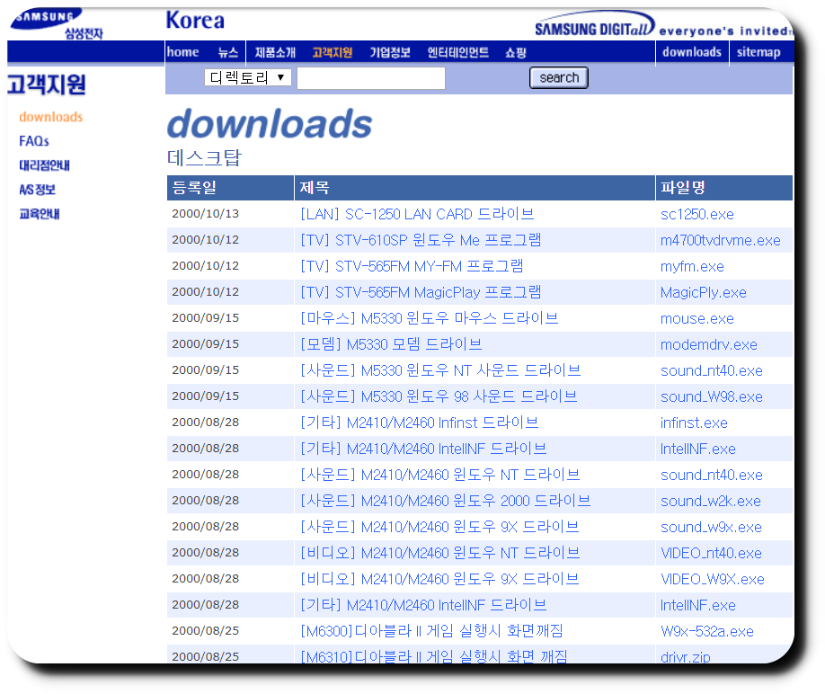 🔻 제일 처음에 말씀드렸 듯이, 과거 홈페이지에 접속해서 운이 좋다면 아래처럼 과거의 파일들을 다운로드 받으실 수도 있습니다. 과거에 필요했던, 소프트웨어가 없어졌다면 한 번 쯤 시도해 보는 것을 어떨까요?
