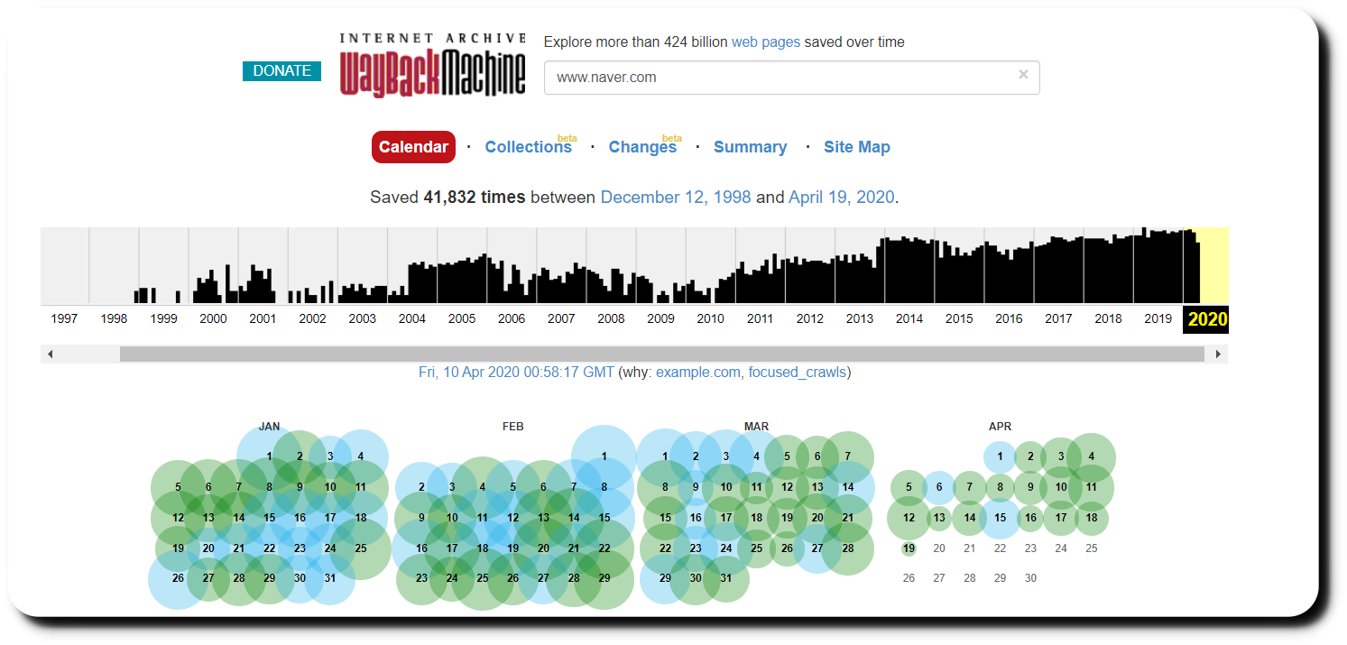 단순히 예전의 홈페이지는 어땟나 궁금해서 심심풀이로 사용하셔도 굉장히 재미가 있을 것입니다. 사실 개인적으로 가장 유용하게 사용했던 경우가 있었는데요.