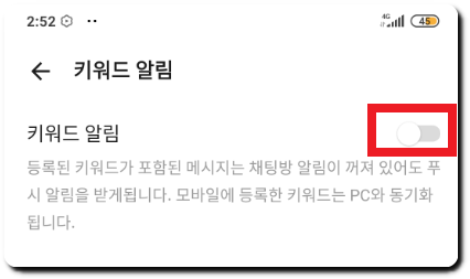 🔻 키워드 알림을 활성화 할 수있는 버튼을 찾았습니다. 이제 키워드 알림을 활성화 해줍니다.