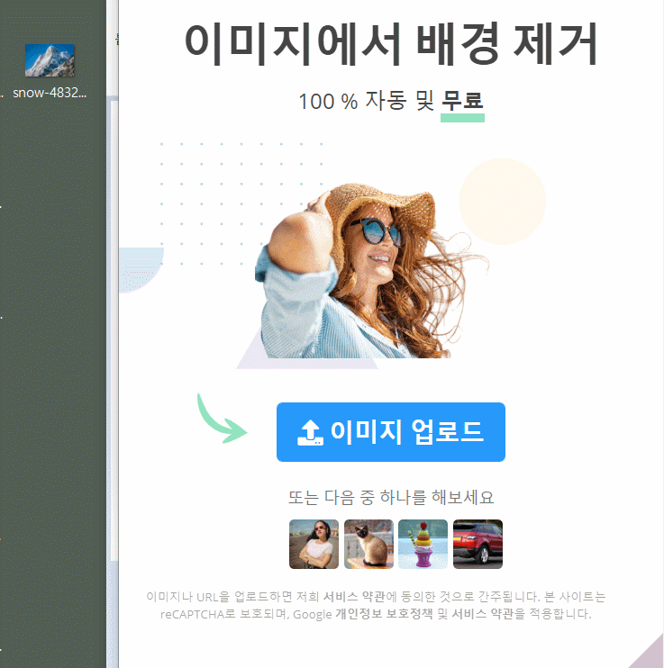 🔻제가 미리 누끼를 따기 위한 이미지하나를 바탕화면에 준비해 놓았습니다. 준비된 이미지를 인터넷 사이트로 바로 드래그 해보았습니다.