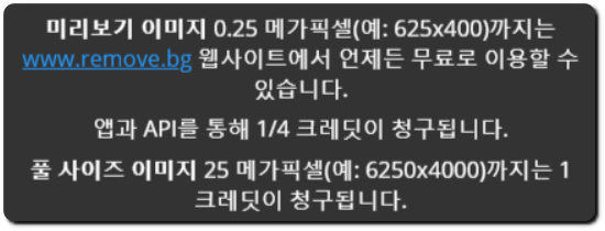첫 번 째로, 단점이라고 말할 수도 있겠지만 당연한 것인데, 누끼를 딴 이미지를 고해상도로 다운로드를 받기 위해서는 결제가 필요합니다. 아래 이미지에서 확인할 수가 있듯, 다운받으실 수 있는 이미지는 0.25 mega pixel (즉, 625 x 400) 까지만 무료로 이용가능하다고 합니다.