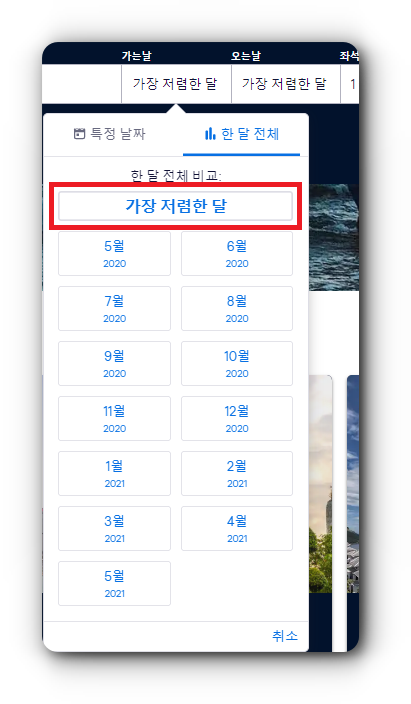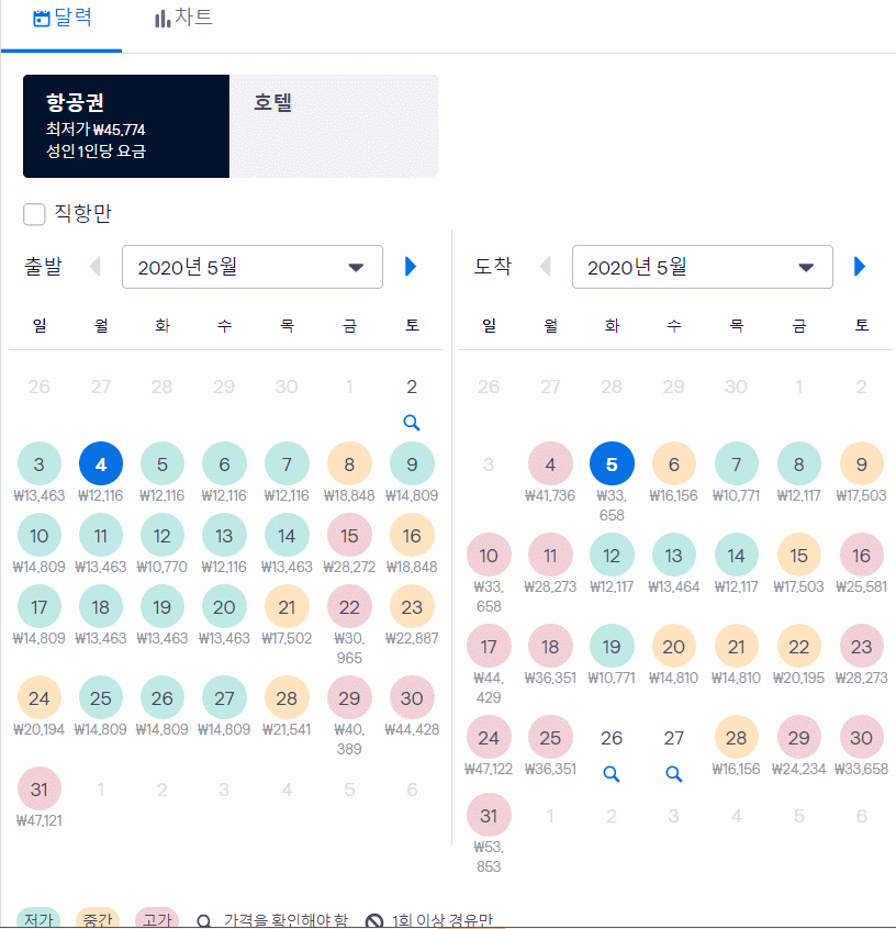 🔻 혹은... 나는 5월이든 6월이든 7월이든 어떠한 달도 상관이 없다고 하시면 가장 저렴한 달을 선택하고 검색을 진행 해주시면 됩니다.