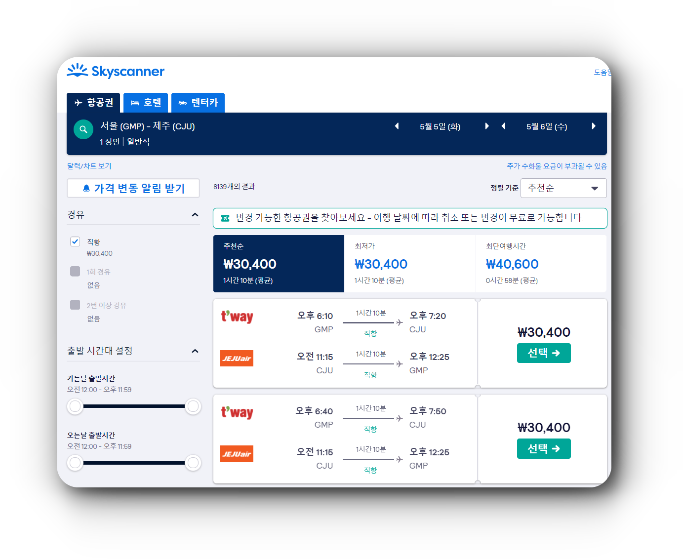 제주도든 어디든 비행기 항공권을 구입할 때는 항상 비수기와 평일이 저렴하다는 사실을 알고 예약을 해야하겠습니다. 또한 수화물도 포함되는지 포함이 되지 않는지도 꼭 확인을 해야합니다. 항공권을 구입할 때 제가 항상이용하는 가격비교 사이트들과 예약하는 방법에 대해서 알려드리려고 합니다.