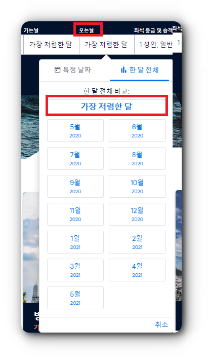 🔻 혹은... 나는 5월이든 6월이든 7월이든 어떠한 달도 상관이 없다고 하시면 가장 저렴한 달을 선택하고 검색을 진행 해주시면 됩니다.