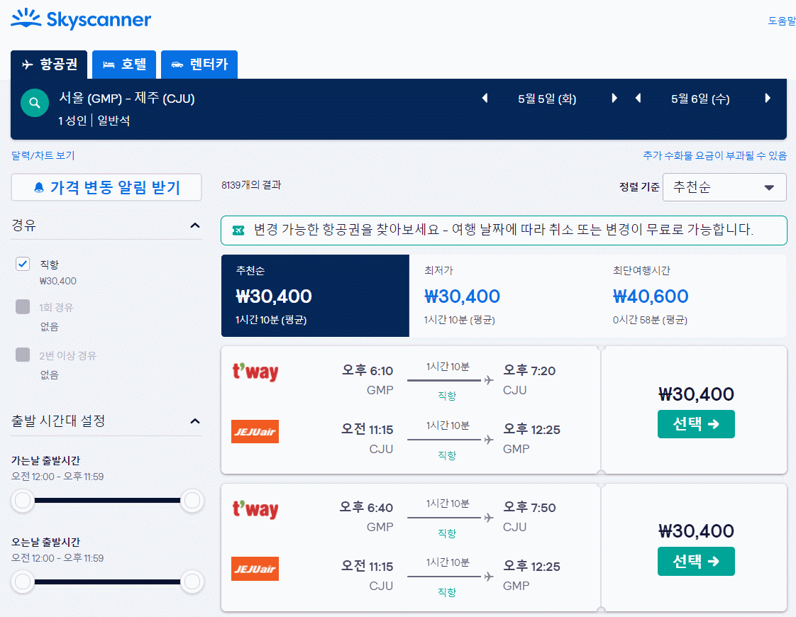 제주도든 어디든 비행기 항공권을 구입할 때는 항상 비수기와 평일이 저렴하다는 사실을 알고 예약을 해야하겠습니다. 또한 수화물도 포함되는지 포함이 되지 않는지도 꼭 확인을 해야합니다. 항공권을 구입할 때 제가 항상이용하는 가격비교 사이트들과 예약하는 방법에 대해서 알려드리려고 합니다.