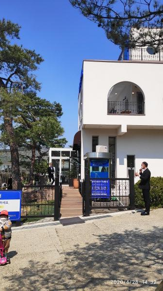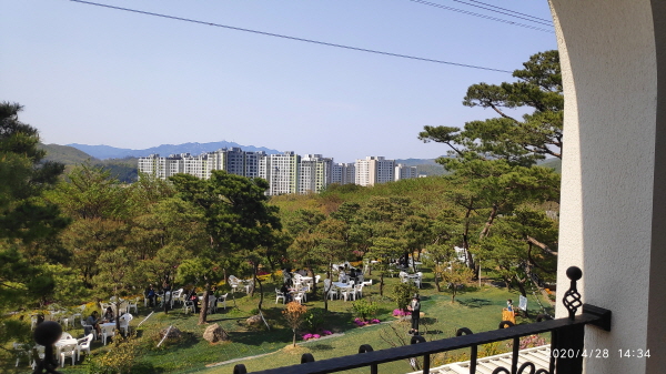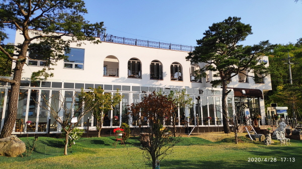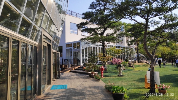 카페 바깥으로 나와서 건물 전경을 찍어 보았는데, 날씨가 좋으니 더 이뻐 보이네요.