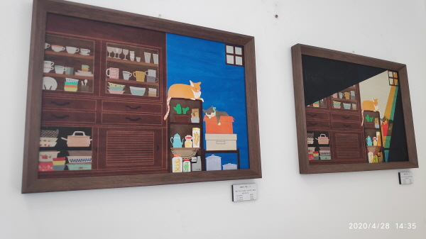 벽에 자세히 보면 미술작품들이 걸려있는데 이게 알고보니 가격이 적혀있는 것을 확인했습니다. 작품을 인테리어로 쓸 뿐만 아니라 판매도 하니 저도 하나 살까 고민은 심각하게 하다가 포기했습니다.