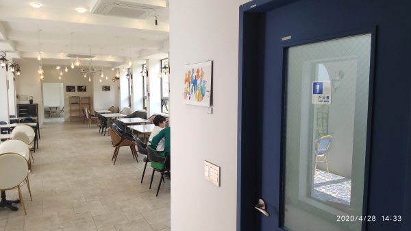 카페 2층의 모습입니다. 남자화장실이 제일먼저 보이네요.