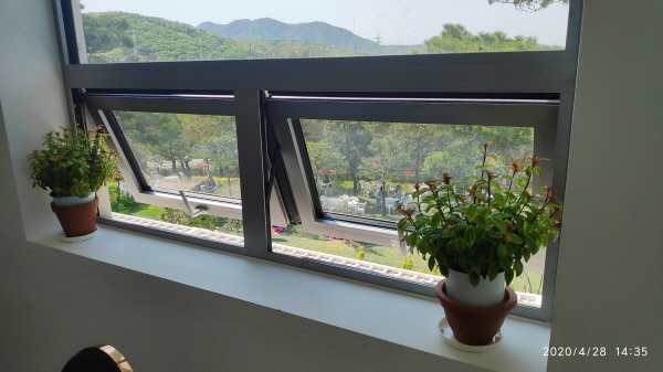 창문에도 화분을 두었네요. 세심하게 신경쓴 모습이 정말 인상적이였습니다. 바깥에는 고양이도 한마리 있는데, 키우는 건지 길고양인지 모르겠네요.