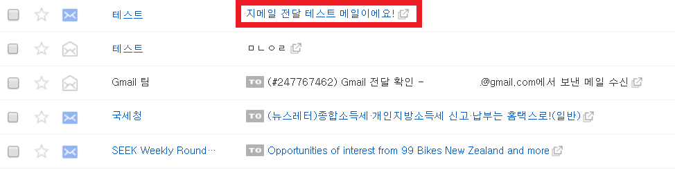 🔻 제 3의 메일로 제 구글 지메일로 테스트 메일을 보내 보았습니다. 이메일이 잘 도착했네요. 그렇다면 제가 연결한 네이버 메일에도 이메일이 왔는지 확인해 보겠습니다.