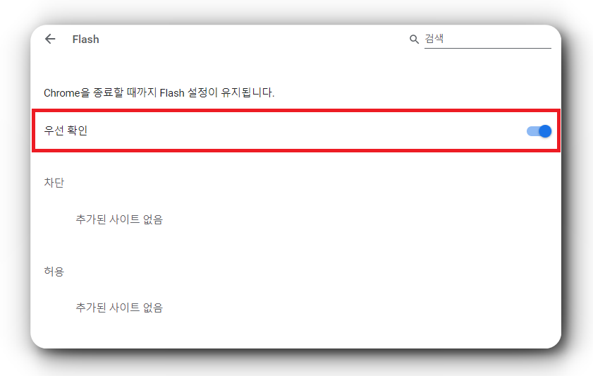 🥖 우선 확인에서 Flash를 활성화 시켜줍니다.