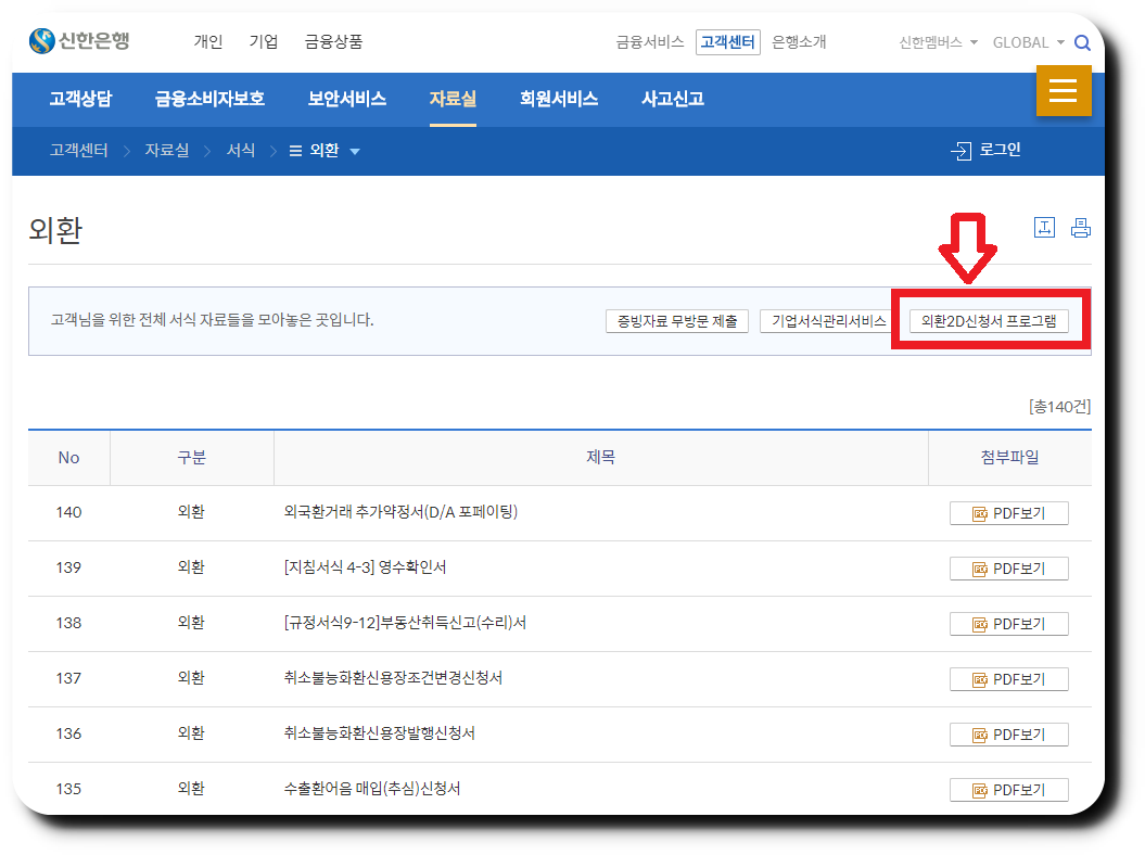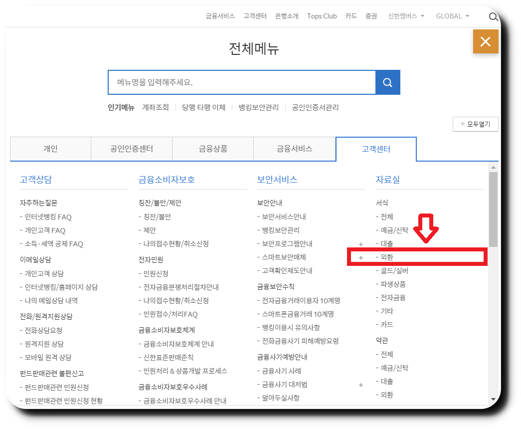 🥖 고객센터의 메뉴 중, 자료실의 '외환'으로 진입해 줍니다.