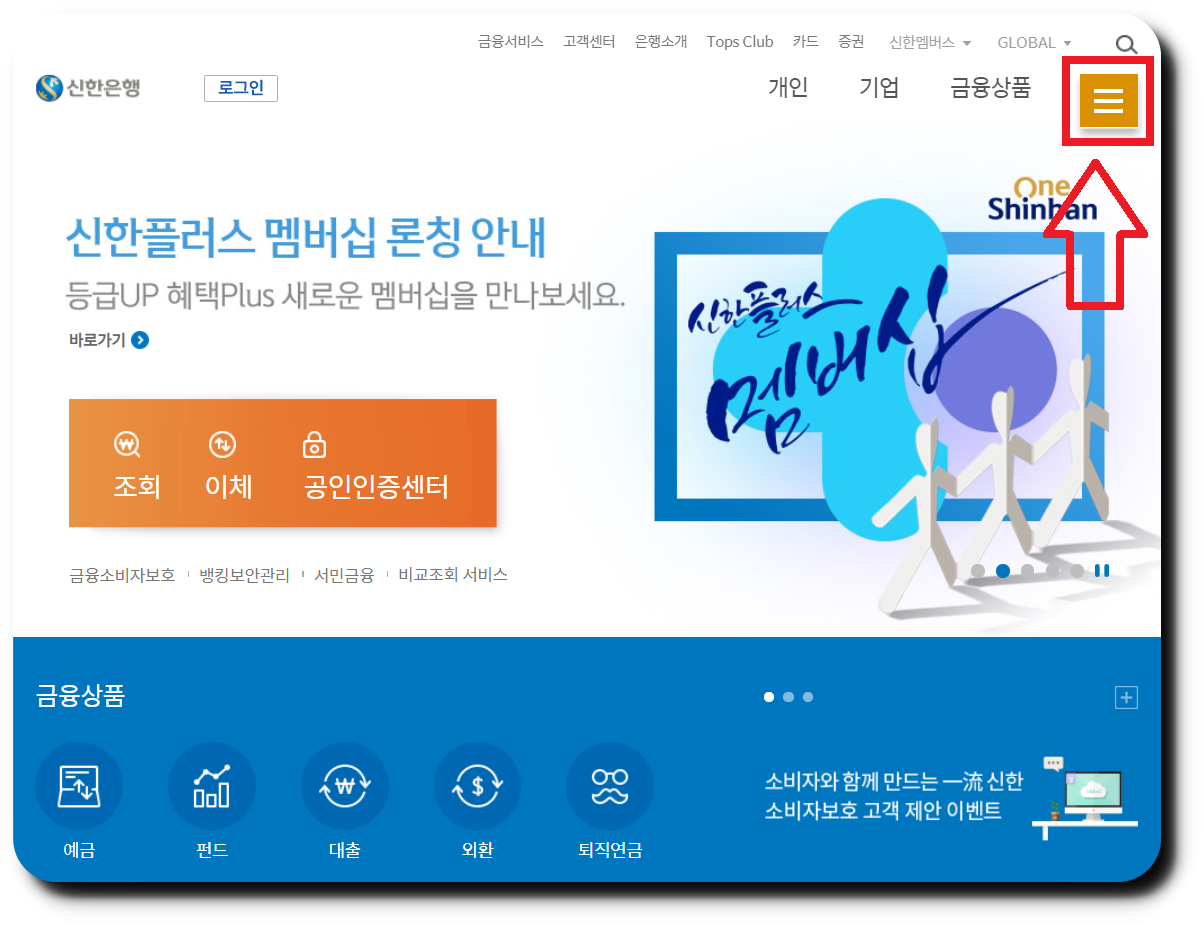 🥖 가장먼저, 아래 이미지를 클릭해서 신한은행 홈페이지에 접속합니다. 혹은 검색포털에서 신한은행을 검색해서 들어가도 됩니다. (이미지를 누르면 홈페이지링크로 연결됩니다.)