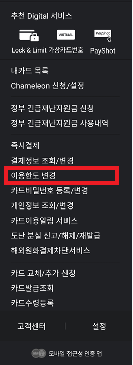 🌈현대카드 앱에서도 한도를 상향하는 옵션이 있습니다. 하지만 한도를 하향변경만 가능하다고 나와 있길래 현대카드에 전화로 문의를 했더니, 신용카드를 만든 후, 6개월간은 상향이 어렵다는 답변을 받았습니다.