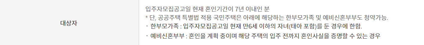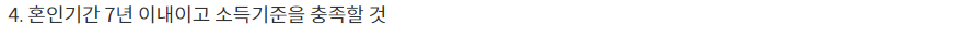 - 결혼을 한 뒤 (혼인하고나서) 7년 이내의 부부까지 자격을 줍니다. (7년까지 신혼이라니...)