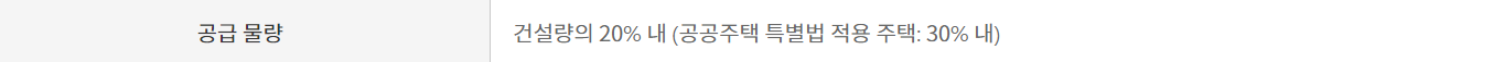 - 공급이 되는 물량은 20% 이내로 규정이 되어있지만, 공공건설임대는 15%, 국민임대는 30%로 다릅니다.