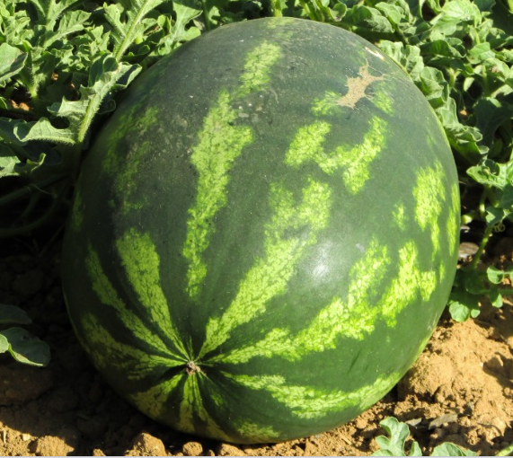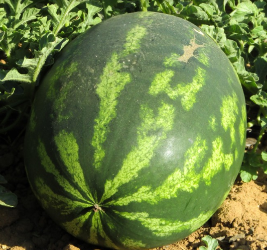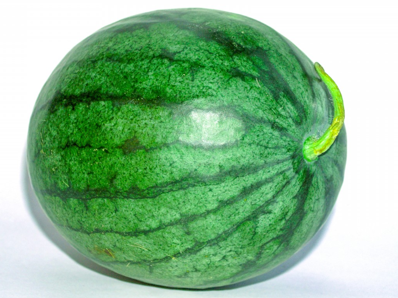 이번에는 수박 표면의 색상입니다. 아래 수박은 검은색과 초록색 줄이 번갈아가는 무늬를 가지고 있는 전형적인 수박의 모습입니다. 수박의 검은 줄이 흐릿하지 않으며, 붓으로 한 획을 그은 것처럼 선명하고 이쁜 것이 더 맛잇는 수박일 확률이 높습니다.