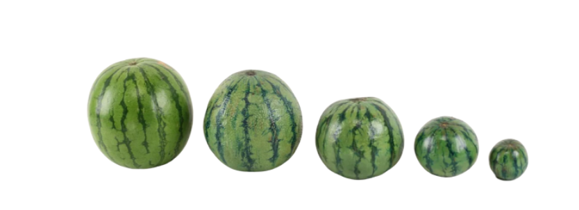 아래 사진에서 보다시피 수박의 모양은 굉장히 다양합니다. 타원형의 길쭉한 형태의 수박은 밍밍한 맛을 가지고 있을 확률이 높습니다. 물을 많이 먹었기 때문에 아래로 길쭉하게 자란것으로 생각이 되며 좀 더 연한 맛을 가지고 있습니다. 그래서 좀 더 동그랗고 윤기나는 수박을 고르는 것이 맛있는 수박일 확률이 높습니다.
