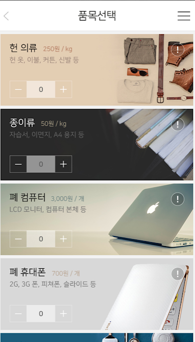 - 마지막으로 '헌옷 헌책 가전제품 방문 수거' 서비스 입니다.