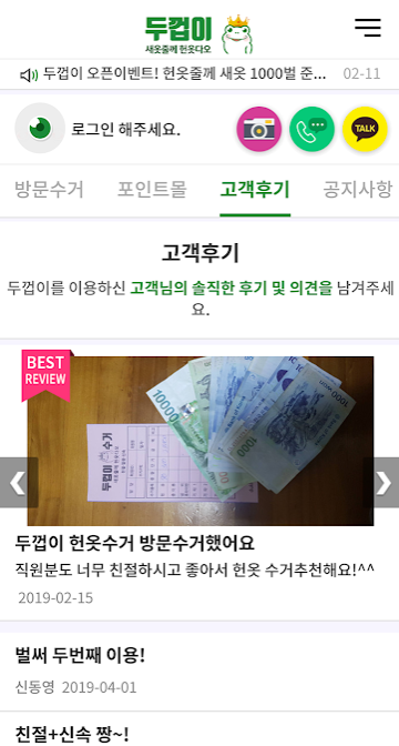🌈개인적으로도 이용하고 있는 수거킹입니다. 이 어플 역시 직접방문하여 헌옷이나 헌책 그리고 신발 가방등을 수거해줍니다. 가장 좋은 장점은 수거와 동시에 현금으로 지급보상을 해줍니다.