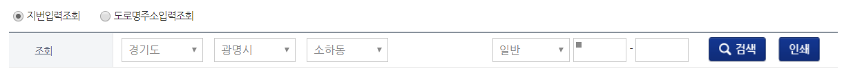 이제 아래 이미지처럼 열람을 하고 싶은 주소를 입력해줍니다. 저는 지번주소로 입력을 해보겠습니다.