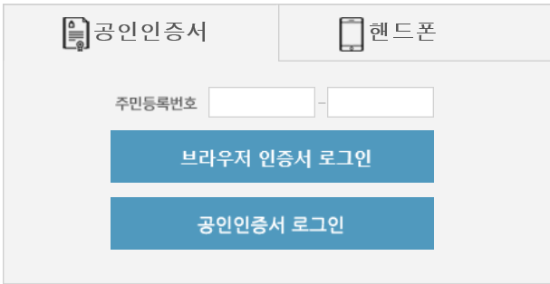 🌈 공인인증서나 핸드폰으로 비회원 로그인이 가능하니 로그인을 해줍니다.