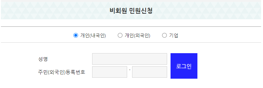 🌈 로그인을 해야하는데, 회원가입을 하지 않아도 이름과 주민번호 혹은 외국인등록번호만 있으면 민원신청이 가능합니다.