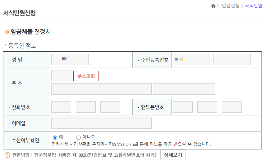 🌈민원 분류 중 원하는 민원을 선택해 주면 됩니다. 임금체불 진정서를 신청해 봅시다.