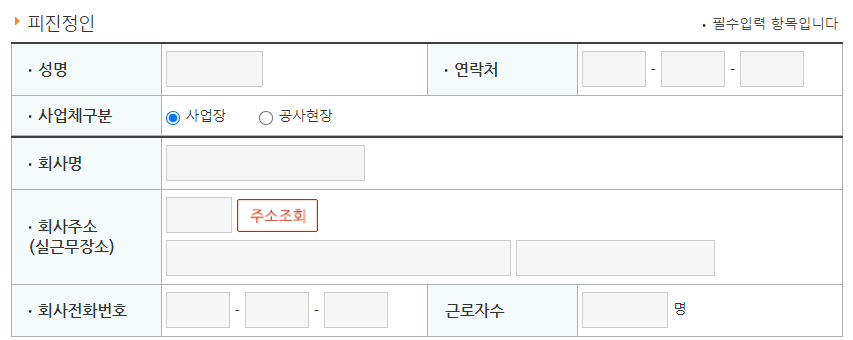 🌈 피 진정인의 정보를 입력합니다. 여기에 바로 사업주의 이름과 연락처 그리고 회사명과 회사주소 등의 정보를 입력하면 됩니다.