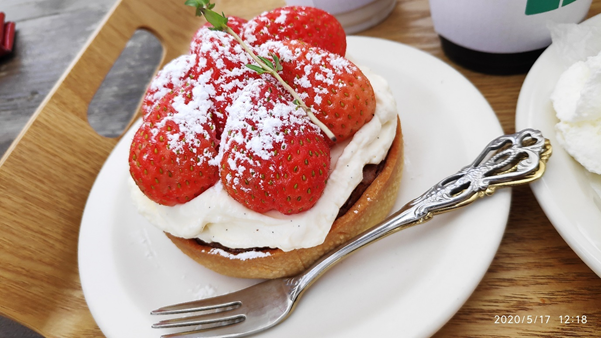 이 중 뭘 먹을지 고민하다가 간단하게 커피 한잔이 생각이 나서 아이스라떼를 주문했습니다. 밀가루 덕후인 전 케익도 그냥 넘어갈수 없어서 딸기타르트와 치즈케익까지 주문을 완료했습니다.